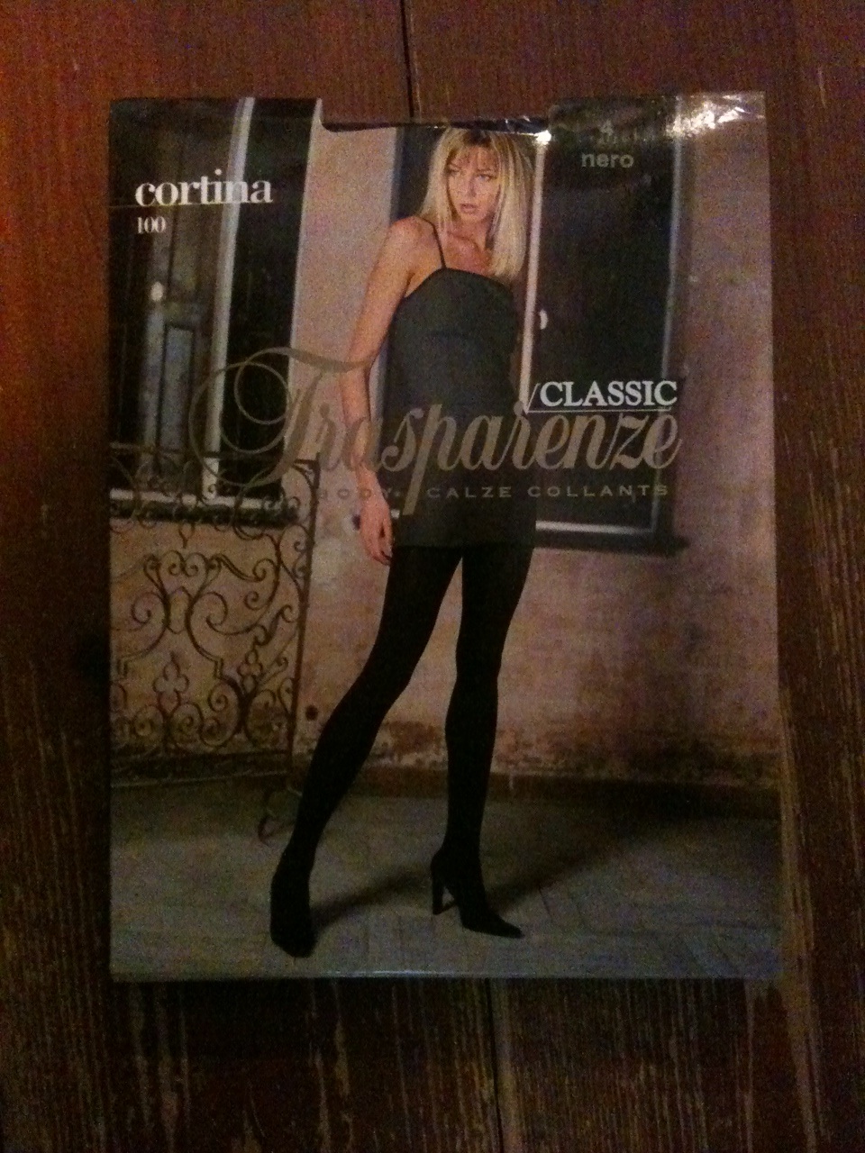 "Glossy opaque 100 den tights with microfibre."
